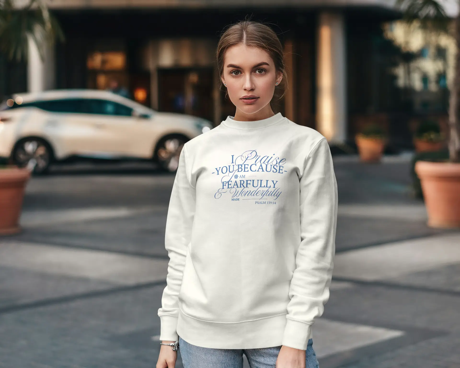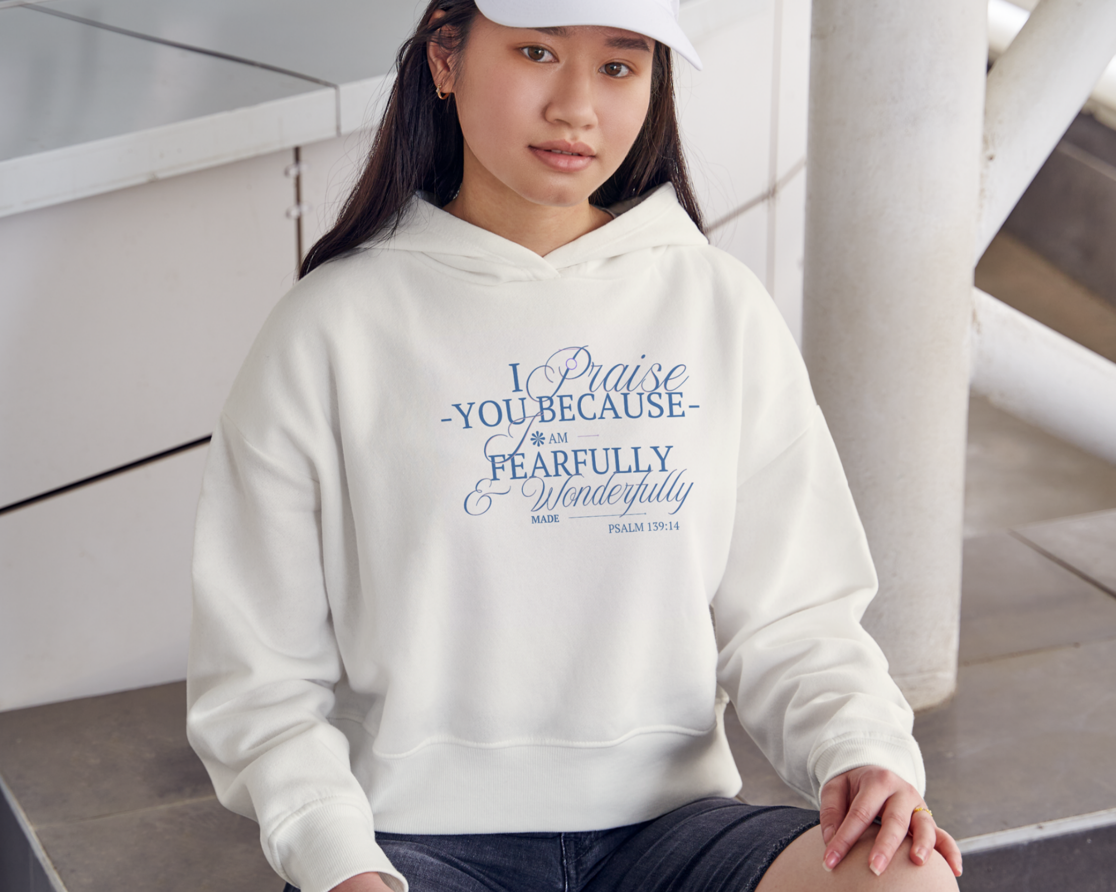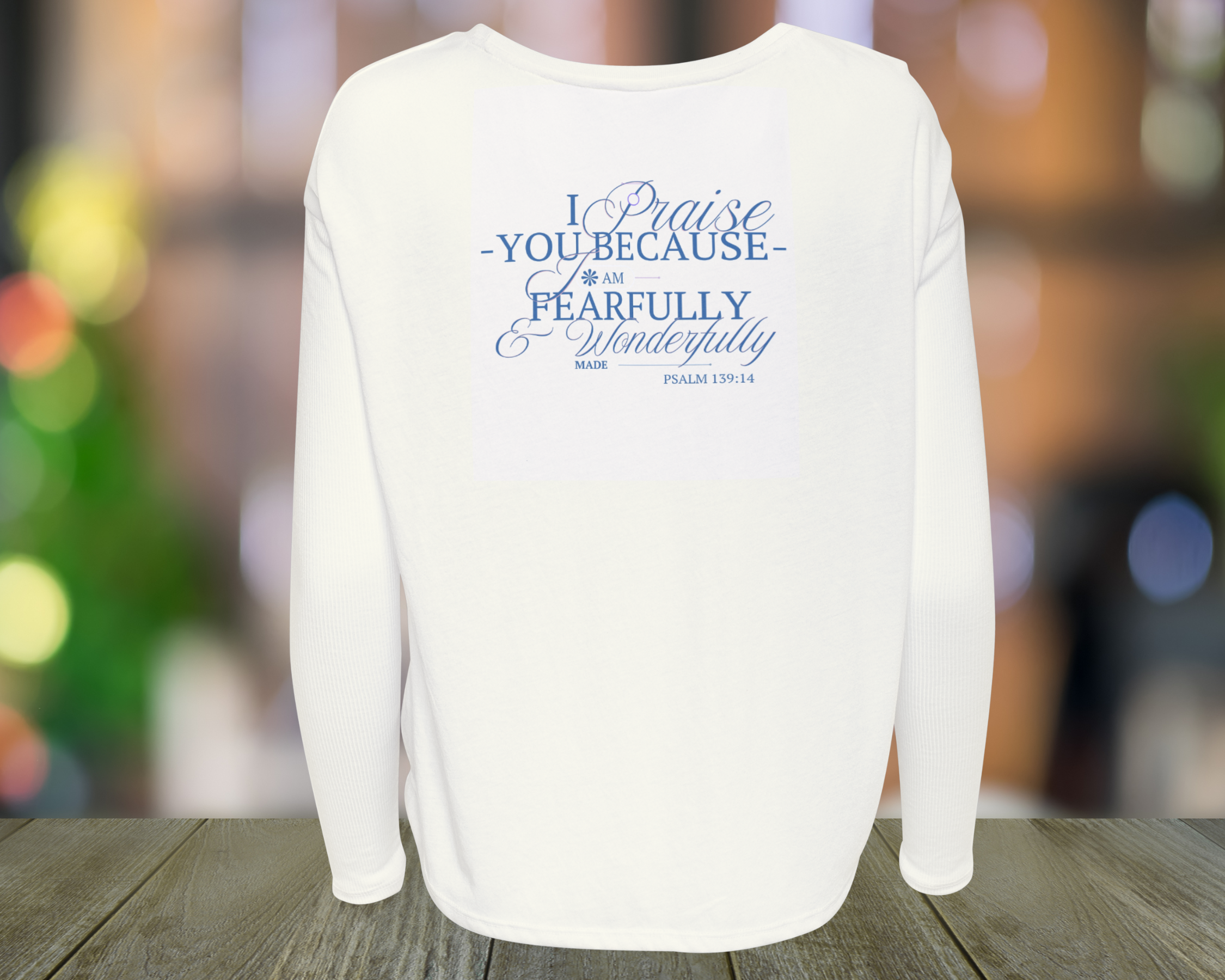 Embrace your unique design with our “Fearfully Made” apparel! This inspiring design, featuring the powerful message from Psalm 139:14, is now available on a range of premium apparel options. Choose from a classic t-shirt, cozy long sleeve, comfortable crew sweatshirt, or a warm hoodie, all in a versatile off-white color.